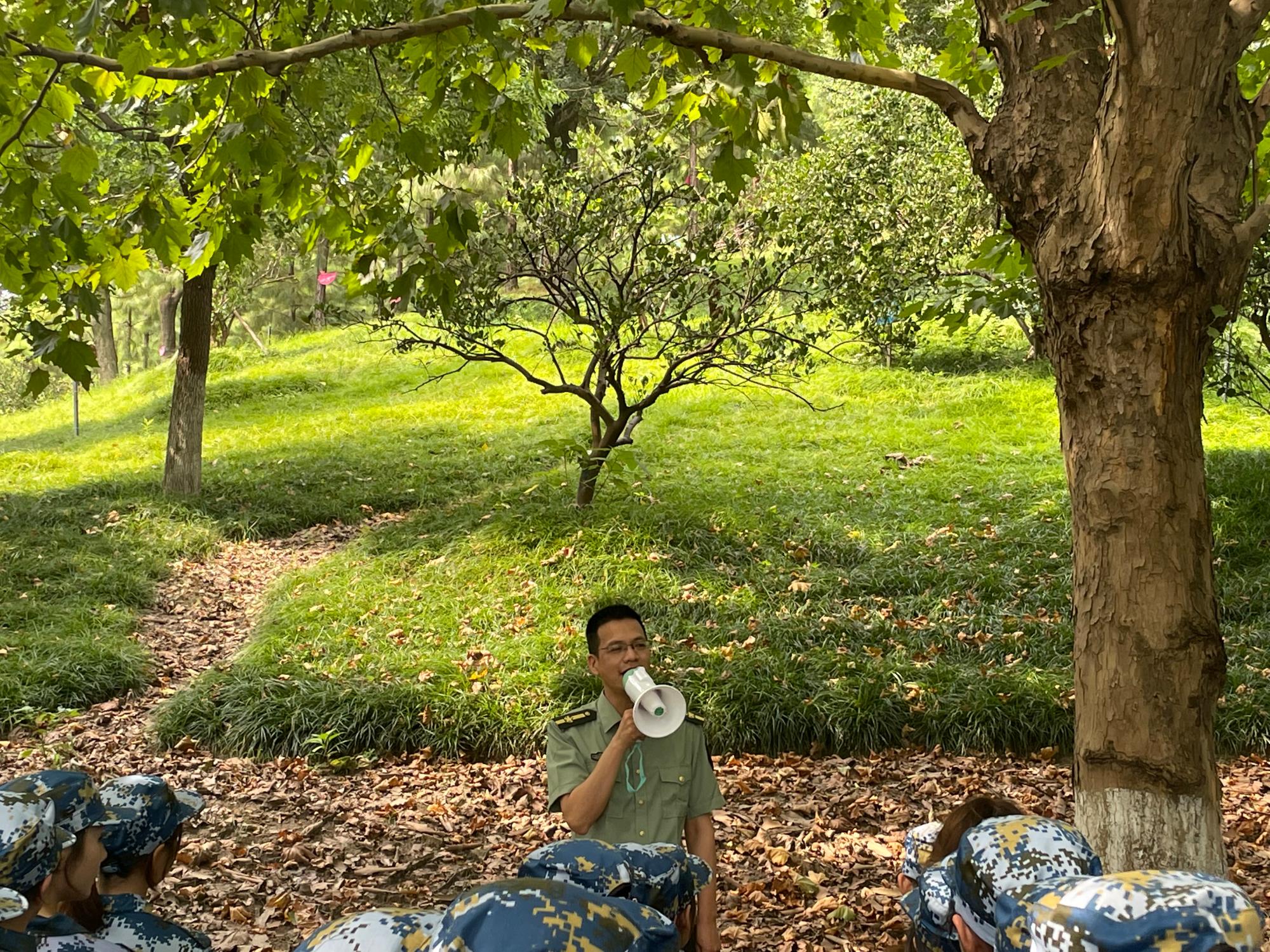 五营营长李冬讲话,他向参训学生强调了军训守则和纪律要求,鼓励学生要不怕苦、不怕累,全力以赴完成军训任务。