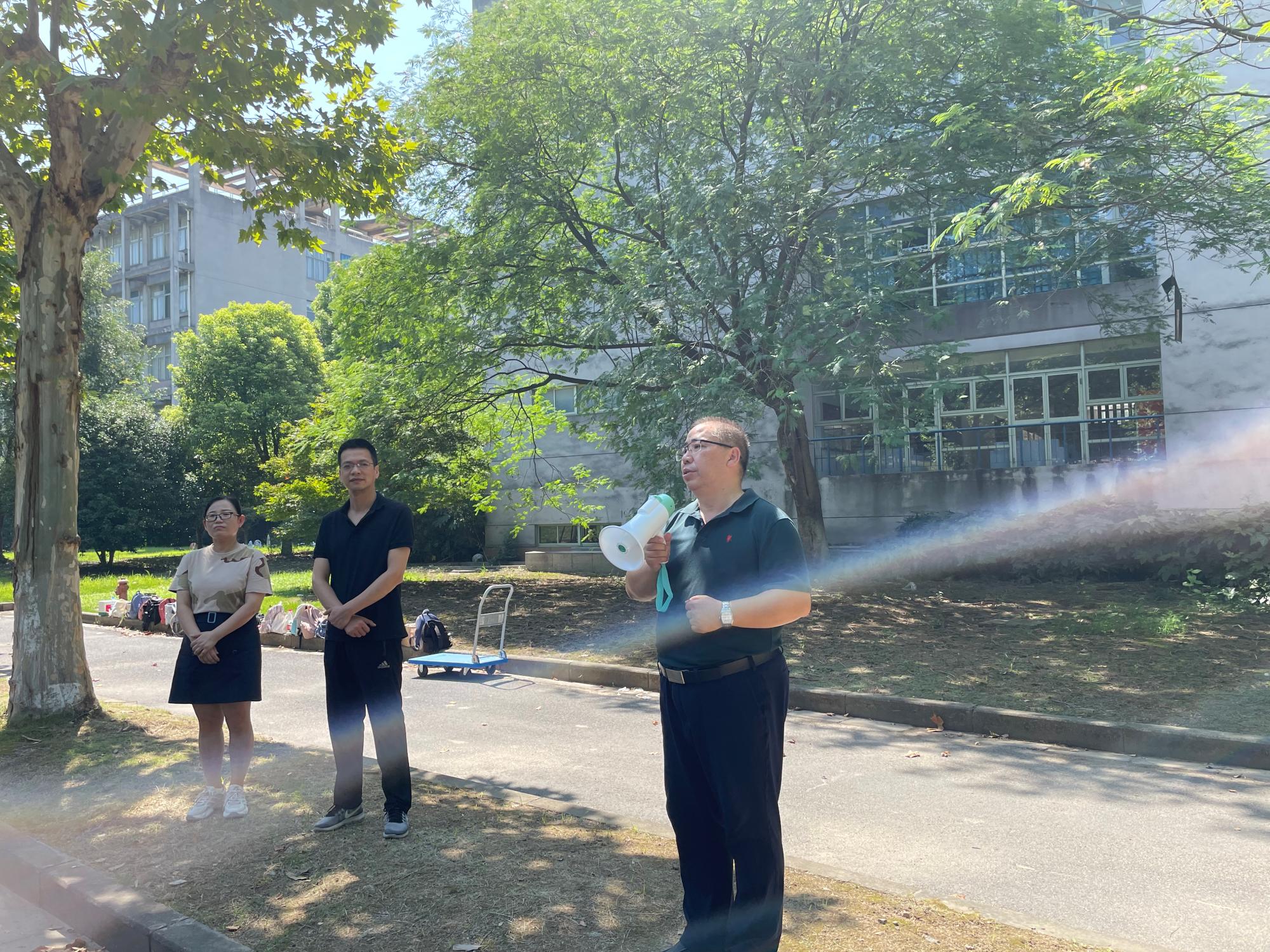 在军训火热进行之际,8月29日上午,学院党委书记黄卫华、学院党委副书记林骁邦、辅导员梁磊、都林走访慰问承训教官、全体参训学生。