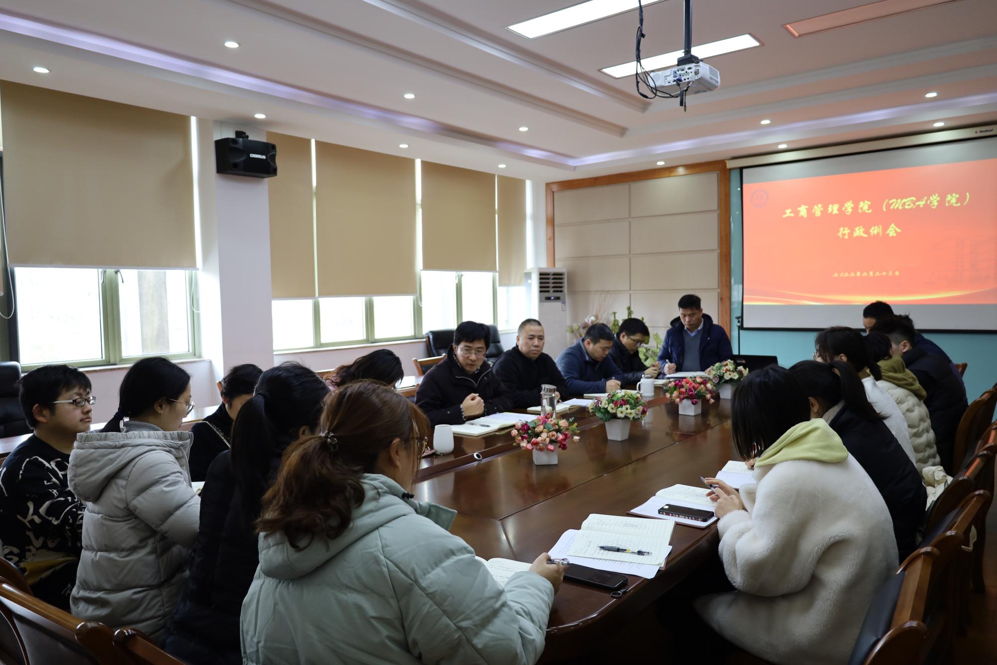 于学院楼410召开2022年行政工作会议。学院院长王建明、党委书记黄卫华、党委副书记吴玻以及全体行政管理人员参加会议。会议由学院党委书记黄卫华主持。