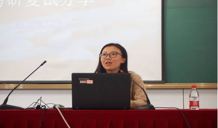 最后跟大家分享经验的是成功考取浙江大学研究生的朱梦君学姐。她着重分享了自己跨专业考研复试准备经历,她从思考能力、研究能力、表达能力、专业能力四个维度讲述了自己的研究生复试情况,并建议同学们要养成日常生活中多看论文,多积攒答题论据的好习惯,给老师更好的印象。