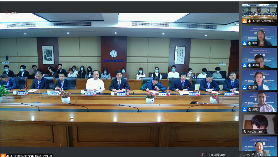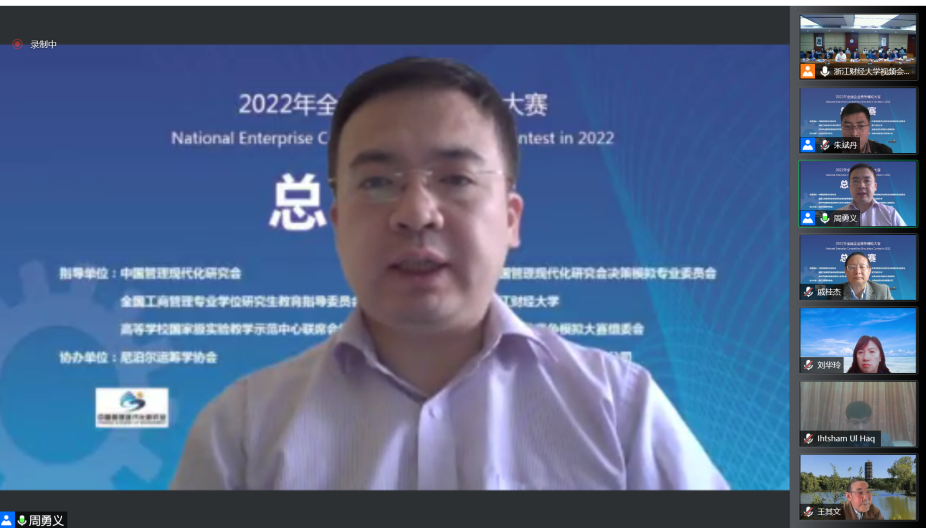 承办的2022年全国企业竞争模拟大赛总决赛开幕式隆重召开。校党委委员、副校长董进才,省教育厅高教处副处长廖波,中国高等教育学会事业发展部主任吴英策,教育部工商管理类专业教学指导委员会秘书长葛京,全国工商管理专业学位研究生教育指导委员会秘书处办公室主任王萍,中国管理现代化研究会联职理事长石勇,高等学校国家级实验教学示范中心联席会副秘书长周勇义,高校竞赛评估与管理体系研究专家工作组成员赵春鱼,校教务处处长李政辉等专家学者以及学院党委书记黄卫华,副书记吴玻,副院长张雷、戴维奇等出席。工商5278论坛