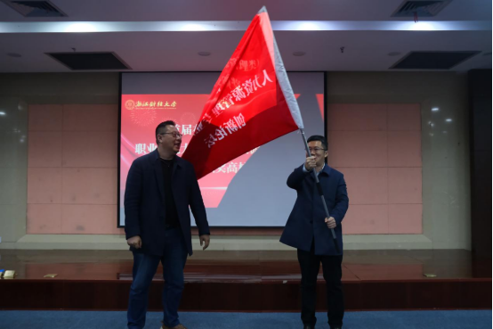 最后,校教务处副处长叶舟代表大赛组委会,将论坛会旗转交给下一届承办高校浙江理工大学经济5278论坛