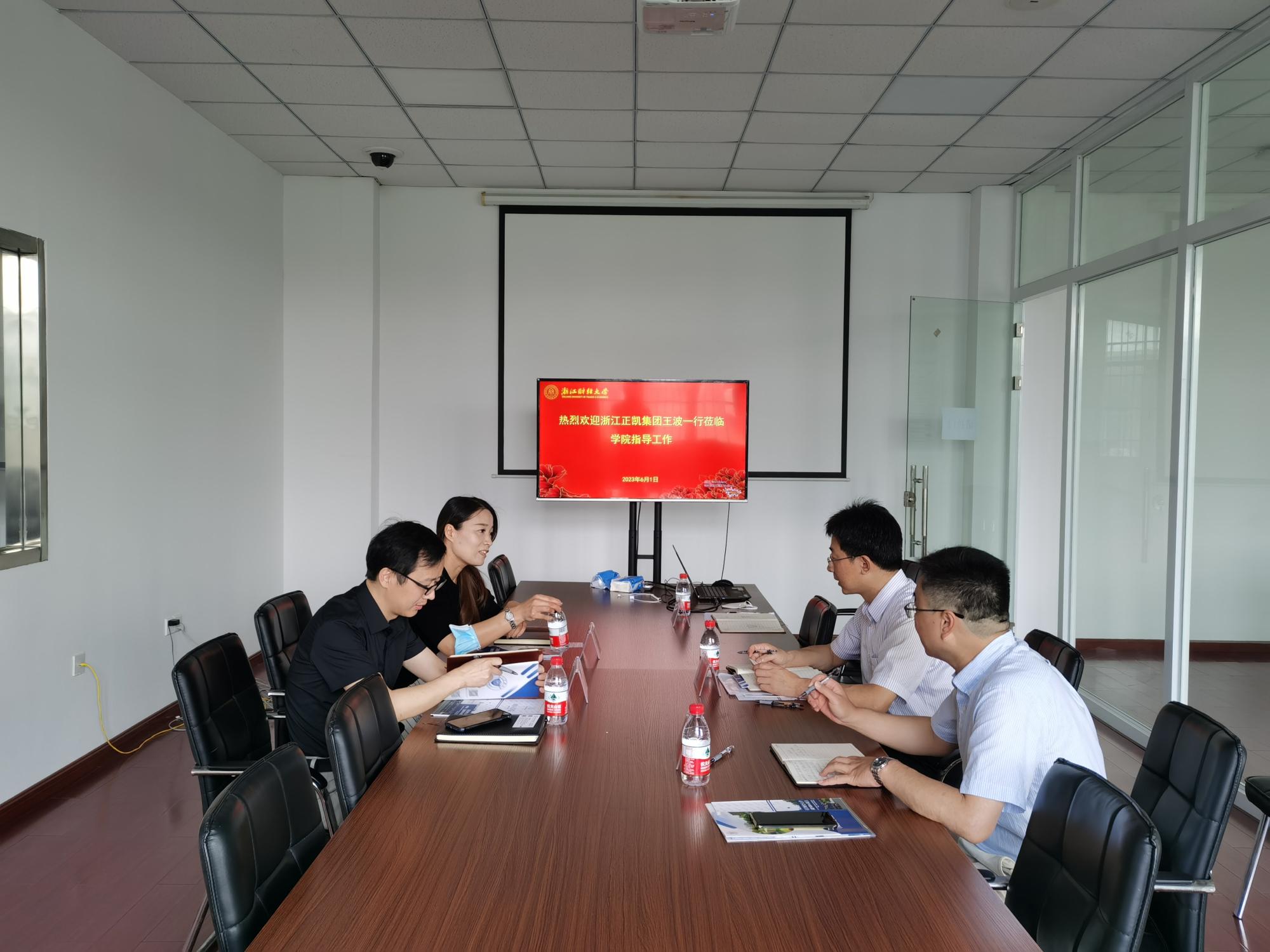 6月1日上午,浙江正凯集团有限公司人力资源部副总监王波、党务工作部主任谢燕飞一行来院交流走访。学院院长王建明、教授马祖军、党委组织员、校友办主任杨文超等参加座谈交流会。