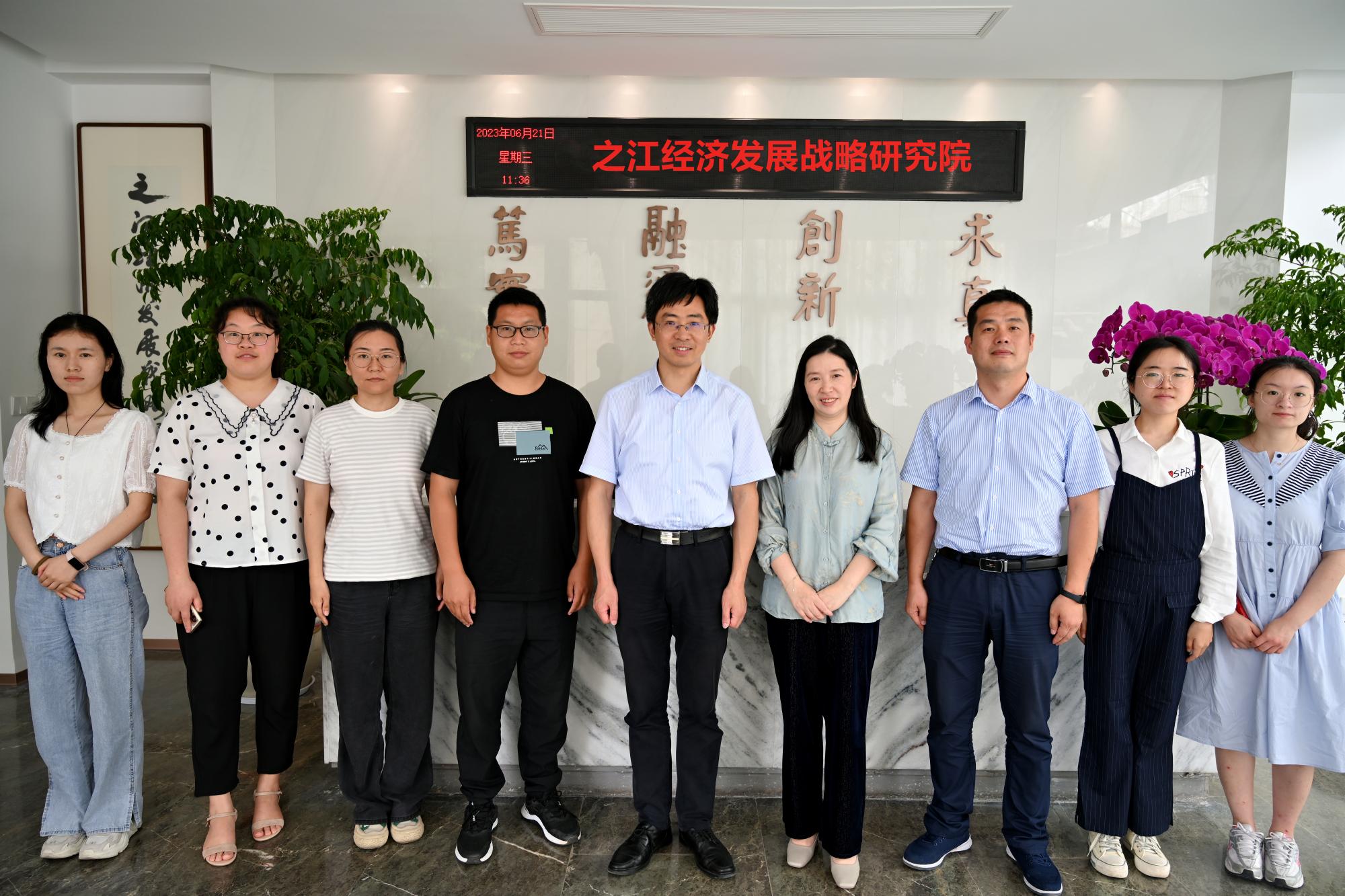 (MBA学院)王建明院长一行赴之江经济研究院调研交流,受到之江经济研究院理事长袁珮真、学术研究部王琦、杨雨婧、新媒体部陈徐来等人的热烈欢迎。