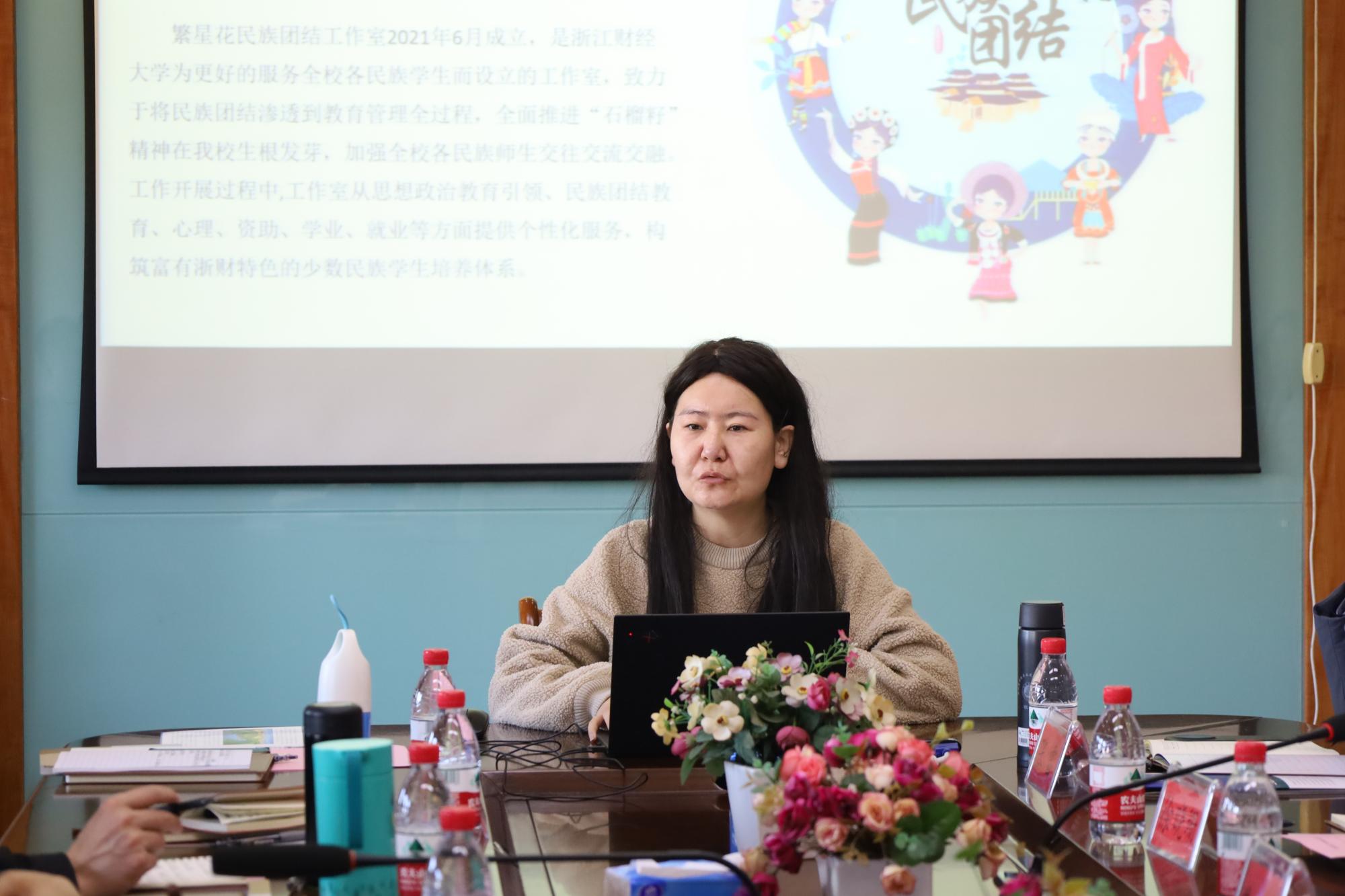 学院民族生辅导员古丽就繁星花民族团结工作室成立的初衷、取得的成绩、存在的问题做了介绍。