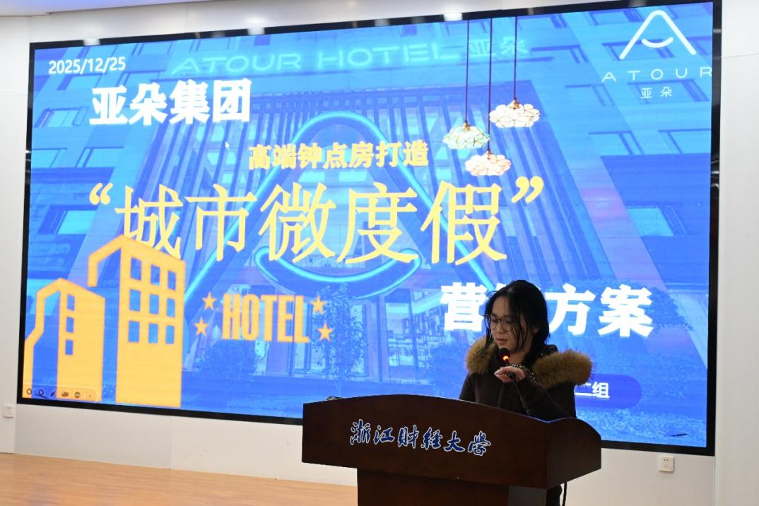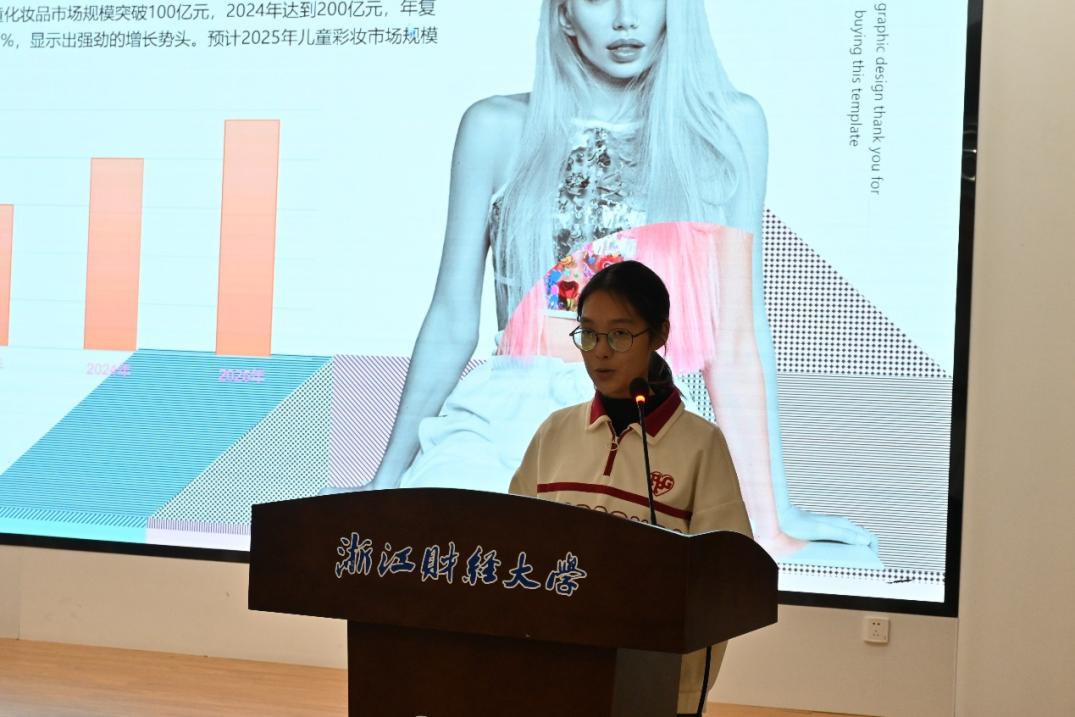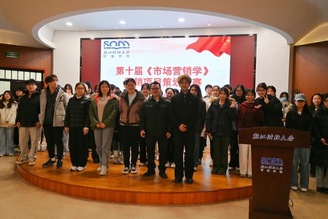 《市场营销学》课程采用项目式教学,以营销策划项目贯穿全课程。历经一学期的教学实践及一个多月的申报筛选,来自本学期《市场营销学》课程组郭军灵、黄卫华、王建国、王凯、范晓明、陈颖、赵辉、黎静仪、田庆宏、吴诗启等10位任课老师所带教学班的近20个参赛团队脱颖而出,入围本次比赛。这些团队带来的策划项目精彩纷呈,包括:花知晓儿童美妆营销策划、亚朵集团城市微度假——高端钟点房打造、蜜雪冰城“山海藏情”公益营销活动策划、凯乐石校园探险家策划、泡泡玛特小野特展营销策划、迪卡侬城市探索站商业营销策划、“盒你在一起·山海有童”——泡泡玛公益营销策划、绳画渔舍海洋非遗工坊企划、花西子·御窑瓷色·焕新纪策划、PETEASE善伴营销策划、Lululemon宣传推广策划、药膳火锅——海底捞×北京同仁堂IP联名项目策划、泡泡玛特×《甄嬛传》IP联名营销策划、喜茶×流浪萌宠营销策划、盗墓笔记×五常大米IP联动策划、东方树叶“国风茶韵 焕新东方”营销策划、星巴克✕北京同仁堂IP联名项目策划、浙财管院文创项目策划、白象食品“—面相伴·双份温暖”公益营销活动策划、支付宝蚂蚁森林“低碳兑换森林”校园公益营销项目策划、KFC×星露谷 IP联名“黄金鸡礼”营销策划等多个项目。比赛中,各参赛团队依抽签顺序进行 PPT 项目策划展示,评委老师从策划内容、创意、营销策略及现场表现等 5 个维度进行点评打分,现场气氛热烈非凡。各小组主讲人条理清晰地阐述项目详情,充分展现团队策划成果与创新思维,积极表达独特见解。评委老师在肯定各参赛队伍策划创意的同时,也精准指出项目优势与不足,为选手提供宝贵经验,也让现场听众对优秀营销策划案的撰写有了更深刻的认识。