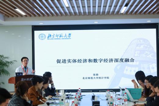 杨静舒老师以《算法推荐、消费者参与和新产品响应:社会流行度的调节效应》为题汇报,研究厘清算法与社会信息联动作用机制,揭示了社会流行度的重要调节作用。北京师范大学张嘉婧同学以《实数融合深化、产业网络协同与新质生产力发展》为题汇报,探析实数融合与新质生产力双向赋能关系,厘清二者演变格局、传导路径与产业网络演化规律。