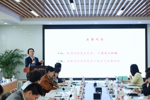 副院长张雷教授主持。浙江大学原党委常委、副校长、国家战略与区域发展研究院院长、教育部长江学者特聘教授黄先海教授带来《创新范式变革与第三大宏观政策建构》专题报告,围绕创新范式变革与第三大宏观制度建构展开深度分享。黄教授提出构建以创新增长为导向的第三大宏观政策,建议以中国原创理论阐释本土创新实践,有助于推动生产函数跃迁和加快新旧动能转换。北京师范大学统计学院二级教授、教育部长江学者特聘教授、北京师范大学科研院副院长兼社会科学处处长张勋教授作题为《促进实体经济和数字经济深度融合》的专题报告,张教授结合自身研究成果,阐释从“数实融合”到“实数融合”的核心内涵,强调数字经济必须服务实体经济、避免脱实向虚,从流通、生产、消费、分配四大维度分享前沿发现,为数字经济研究与实践提供了重要参考。