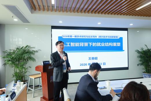 2026年4月11日至12日,第一期“学术研究与论文写作”(新兴技术与创新管理专题)研修班圆满举办。12日,研修班次日活动如期开展,与会专家与青年学者聚焦研究设计、方法应用、论文写作与期刊发表等关键议题展开深入研讨,现场学术氛围浓厚,交流研讨成果丰硕。