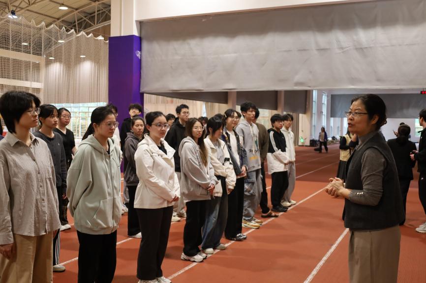 训练场上,学院领导、辅导员与带队教师简短交流,详细询问训练进度、身体状态和后勤保障情况。谢敏书记叮嘱同学们:认真训练更要科学训练,务必注意运动安全,合理安排强度,保证充足休息,并特别提醒大家平时要做好热身和放松,防止因疲劳受伤,以最佳状态迎接抽测。
