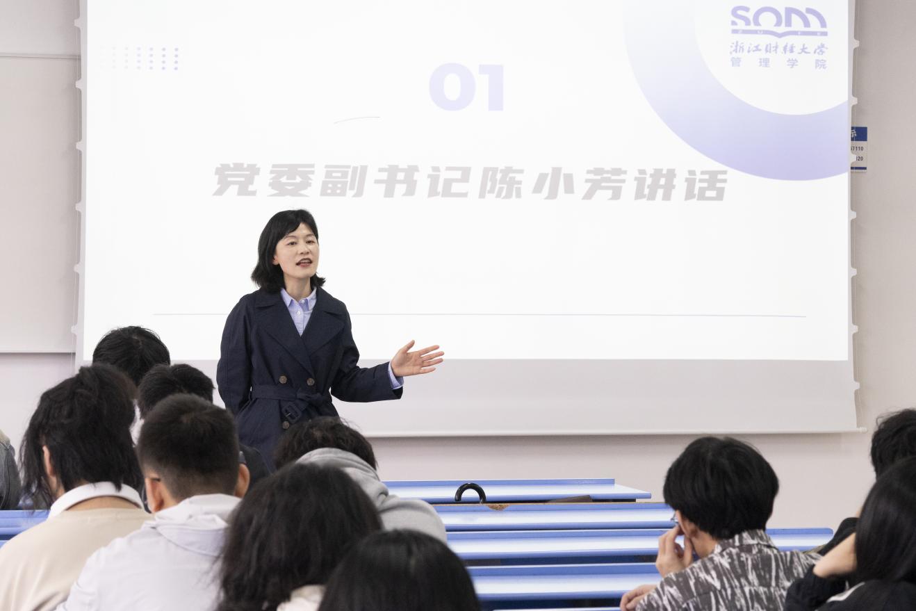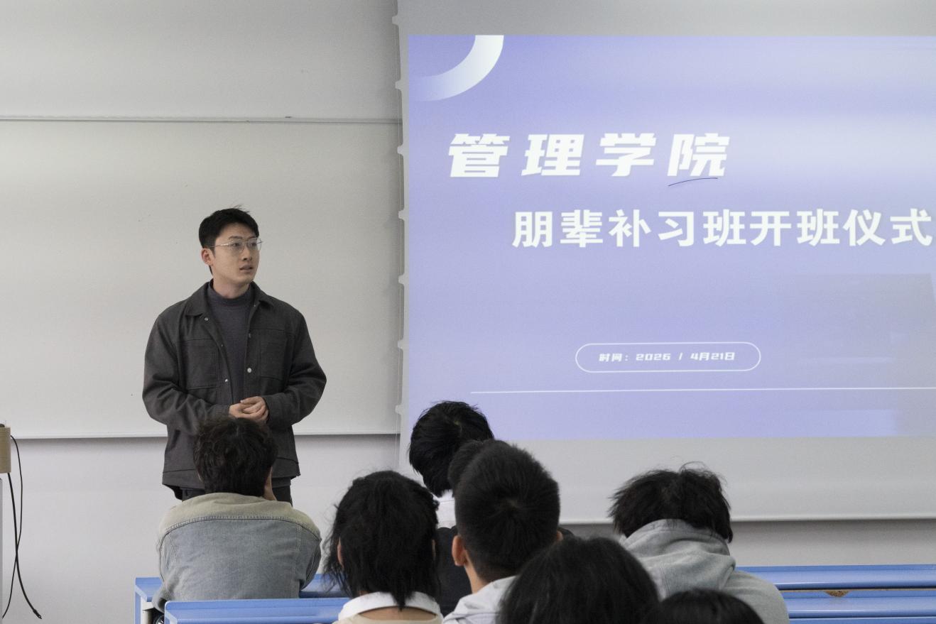 开班仪式上,陈小芳副书记致辞。她指出,举办朋辈补习班是学院加强学风建设、精准助力学生学业发展的重要举措。她强调,读书是最有价值的人生投资,知识与学历是未来发展的核心竞争力,鼓励同学们正视微积分、高等数学等学习难点,坚定信心、迎难而上,牢牢把握学位证书这一关键“敲门砖”。陈小芳老师对同学们提出三点要求:一是强化集体荣誉感,牢记管院身份,以院为家、为院争光;二是坚持自我检视,摒弃“躺平”思想,树立更高学习目标;三是严守自律底线,合理规划时间、调整作息习惯,充分发挥主观能动性,在互助学习中补齐短板、提升能力。她表示,学院将全力做好学业支持与服务保障,助力同学们顺利完成学习任务、实现成长目标。