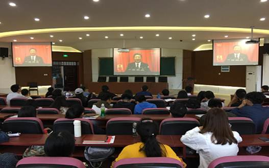 教职工、研究生、主要学生干部、本科生各党支部代表、青年团员齐聚一堂,在学院楼217会议室观看了十九大开幕会现场直播。