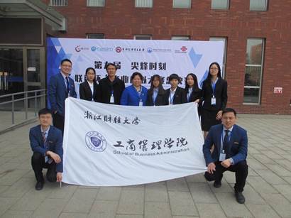 MBA研究生沈深圳、钱伟、王木顶、朱跃组成的 “钱多多”队和14工商孙可臻、贾苏琪、陈珑戈、会计学院苏优梦组成的“破势”队,在决赛中表现出色,分别荣获研究生组和本科组二等奖。赵昶、沈渊两位老师获优秀指导教师奖。