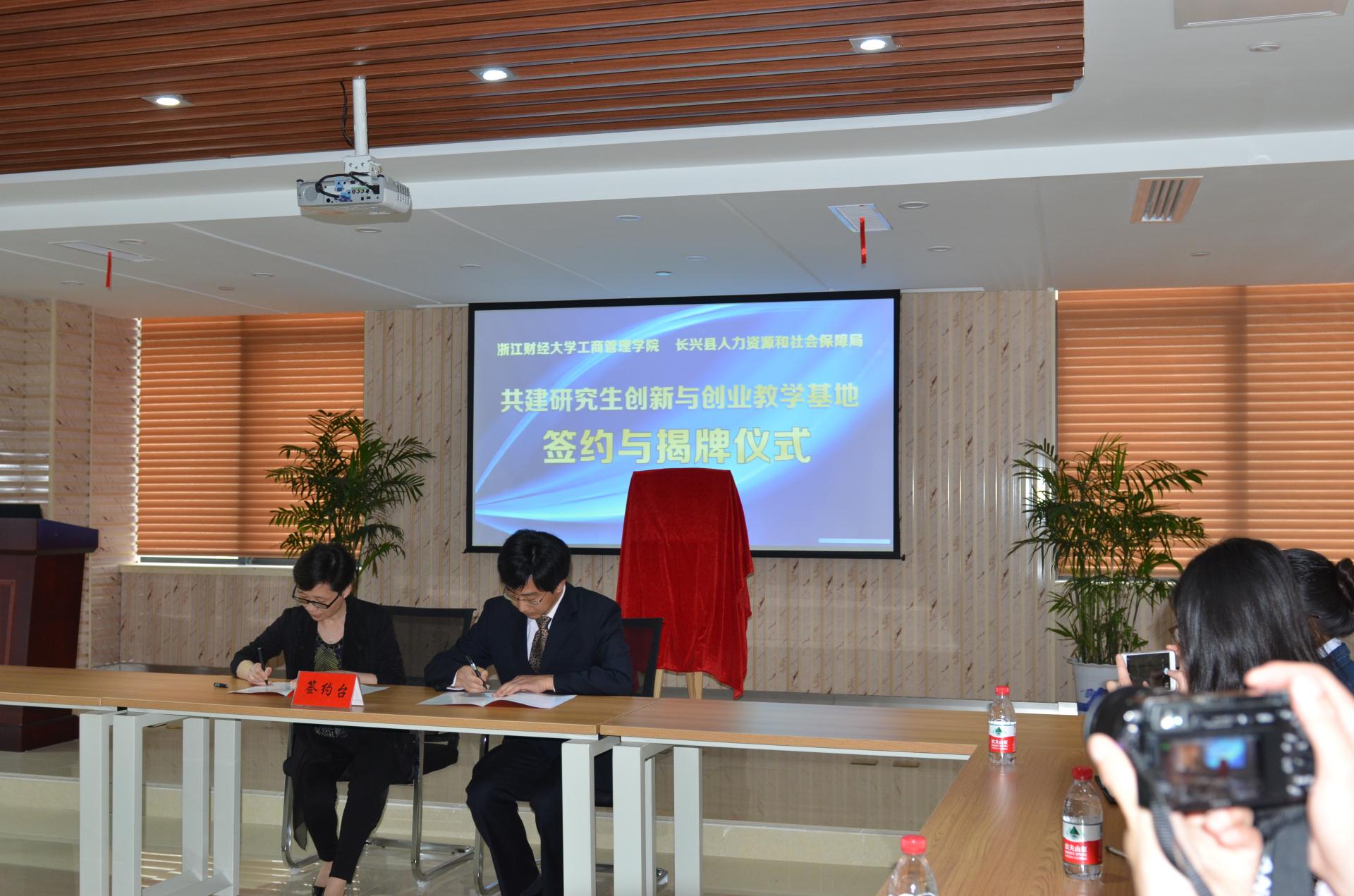与长兴县人力资源和社会保障局共建研究生创新与创业教学基地合作协议签署与教学基地揭牌仪式。下午的4 个小时,双方共同举办了第一期《创新与创业管理》移动课堂教学活动。参加课堂教学活动的有六方人员:2015级企业管理专业硕士生和部分工商管理专业本科生;工商5278论坛