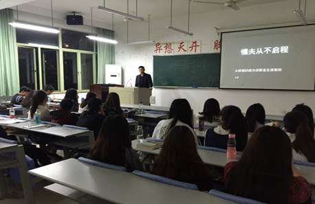 110为人力资源管理专业本科生讲授“从铁城的成功畅谈大学生职业生涯规划”。