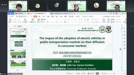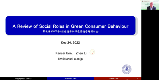 常亚平教授做了题为《谈谈“双碳”的商业机会》的报告,从营销视角分享实现“双碳”目标的商业机会和研究可能。日本关西大学商学院李振教授和做了题为《A review of social roles in green consumer behavior》的报告,分享了社会角色在消费者绿色消费行为的作用的文献综述。
