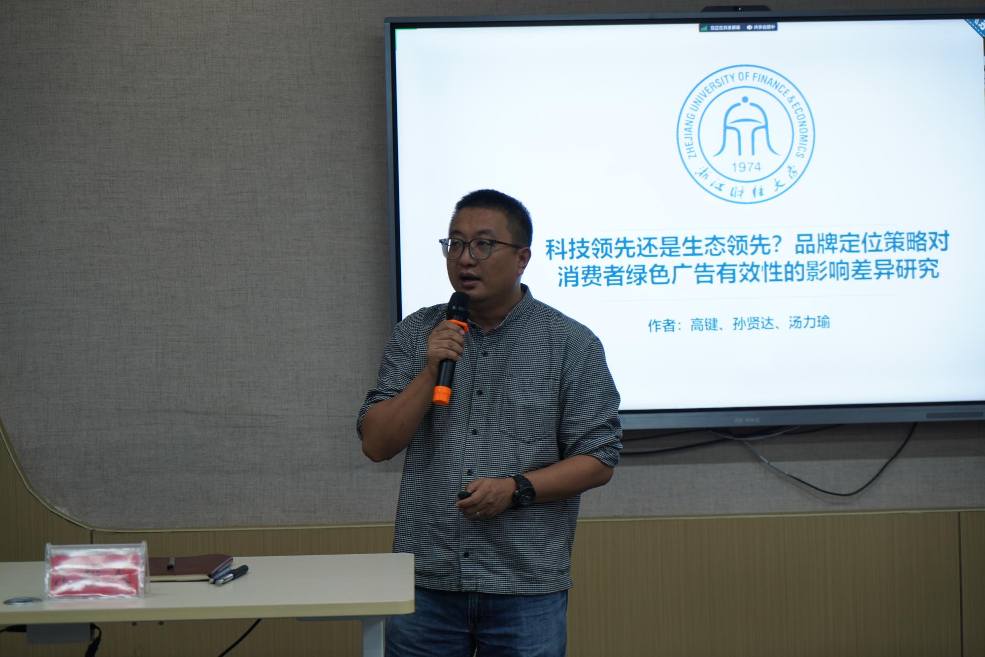 的高键老师作了“科技领先还是生态领先?品牌定位策略对消费者绿色广告有效性的影响差异研究”的主题报告。在绿色广告中采用科技领先品牌定位和生态领先品牌定位是厂商在推广绿色产品时所惯常使用的两种不同品牌定位策略,但是哪者更有效一直都是学者和厂商都在关心的话题。高健指出,相比于非技术密集型产品,在技术密集型产品条件下绿色品牌的科技领先定位要比生态领先定位对消费者绿色广告的有效性产生更强的正向影响;而相比于技术密集型产品,在非技术密集型产品条件下绿色品牌的生态领先定位要比科技领先定位对消费者绿色广告的有效性产生更强的正向影响。