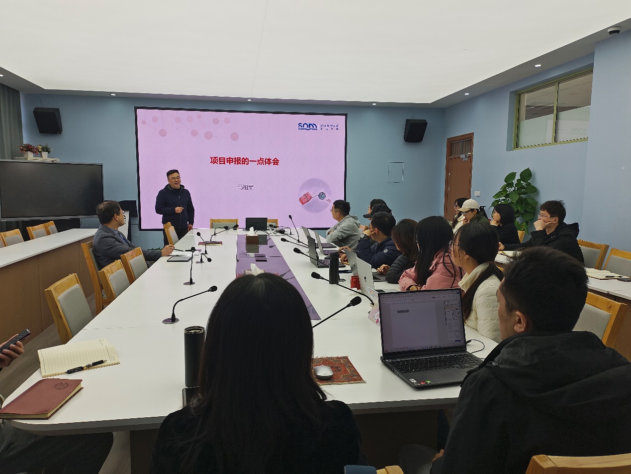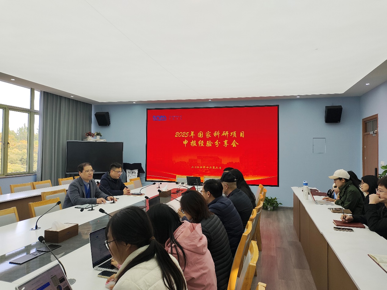 楼416会议室举行2025年国家科研项目申报经验分享会。学院邀请马祖军教授、刘维树副教授分享国家科研项目申报经验,会议由戴维奇教授主持,学院20余名教师参会。