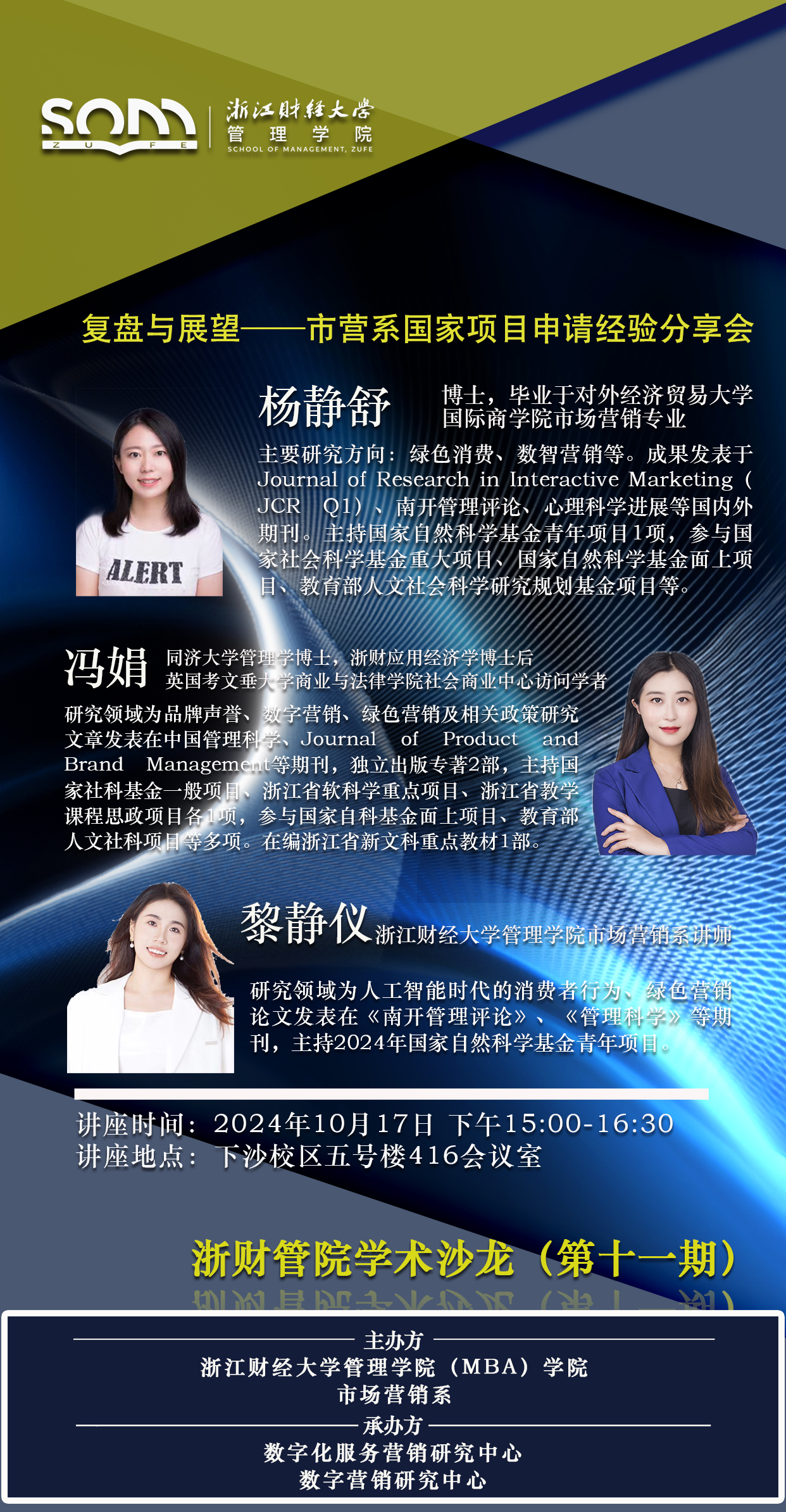 的科研工作。2024年10月17日下午,由市场营销系主办,数字营销研究中心和数字服务营销研究中心承办的“复盘与展望----国家项目获得者经验分享活动”在5278论坛
