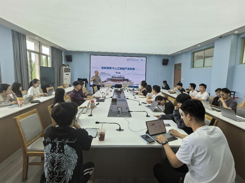 黄鹂强教授,以“数据要素与人工智能产业发展”为题,向在场师生做了系统的分享。戴维奇副院长等学院师生共20余人积极参与,本次讲座由数智技术与管理创新研究所所长杨水清教授担任主持。