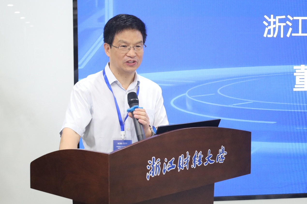 副校长董进才教授致辞。董进才教授表示,当前浙江省正大力推动人工智能技术创新与产业应用,学校坐落于“数字之都”杭州,对人工智能领域的学术研究、技术突破与人才培养理应提出更高要求。大数据作为驱动产业变革的核心力量,已深刻改变企业的经营决策模式、生产运营流程,同时也对企业的数据治理能力、数字化转型速度提出了全新要求。在技术融合层面,大数据与人工智能技术两者深度融合、落地生根,正为经济高质量发展提供可复制、可推广的实践范式。希望与会各方借助本次会议加强交流学习、深化合作探索,共同为人工智能与大数据领域的发展贡献智慧与力量。