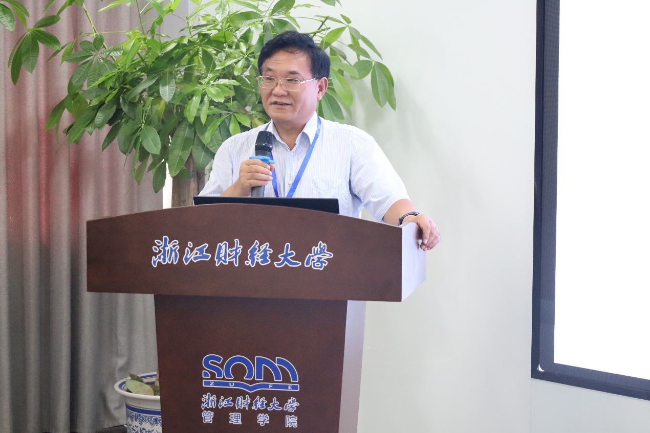 上午上半场由广州商学院副校长钟昌标教授主持,东北财经大学原副校长王维国教授、合肥工业大学副校长吴华清教授两位专家作学术报告。王维国教授围绕“数字金融发展的碳减排效应——来自家庭消费侧的微观调查证据”主题,指出数字金融发展有助于降低家庭消费碳排放,而家庭消费结构升级和公众环保意识提升则是重要影响途径。这一效应主要体现在地区数字基础设施更完善、数字设备可及度更高,以及数字技能和偏好更强的家庭。吴华清教授带来了“Data Envelopment Analysis in Streaming DataContexts:AHeterogeneity-Oriented Approach”的报告,研究面向时间异质性与空间异质性,提升效率评价结果的真实性与稳健性,并为流数据环境下的实时监测与预警提供更加可靠的决策支持。与传统模型相比,考虑了时间异质性和空间异质性的模型能够更准确地评价决策单元绩效。在保证决策单元绩效评价准确性的同时,实现对新进流数据的快速、近实时计算,充分发挥流数据的实时应用价值。