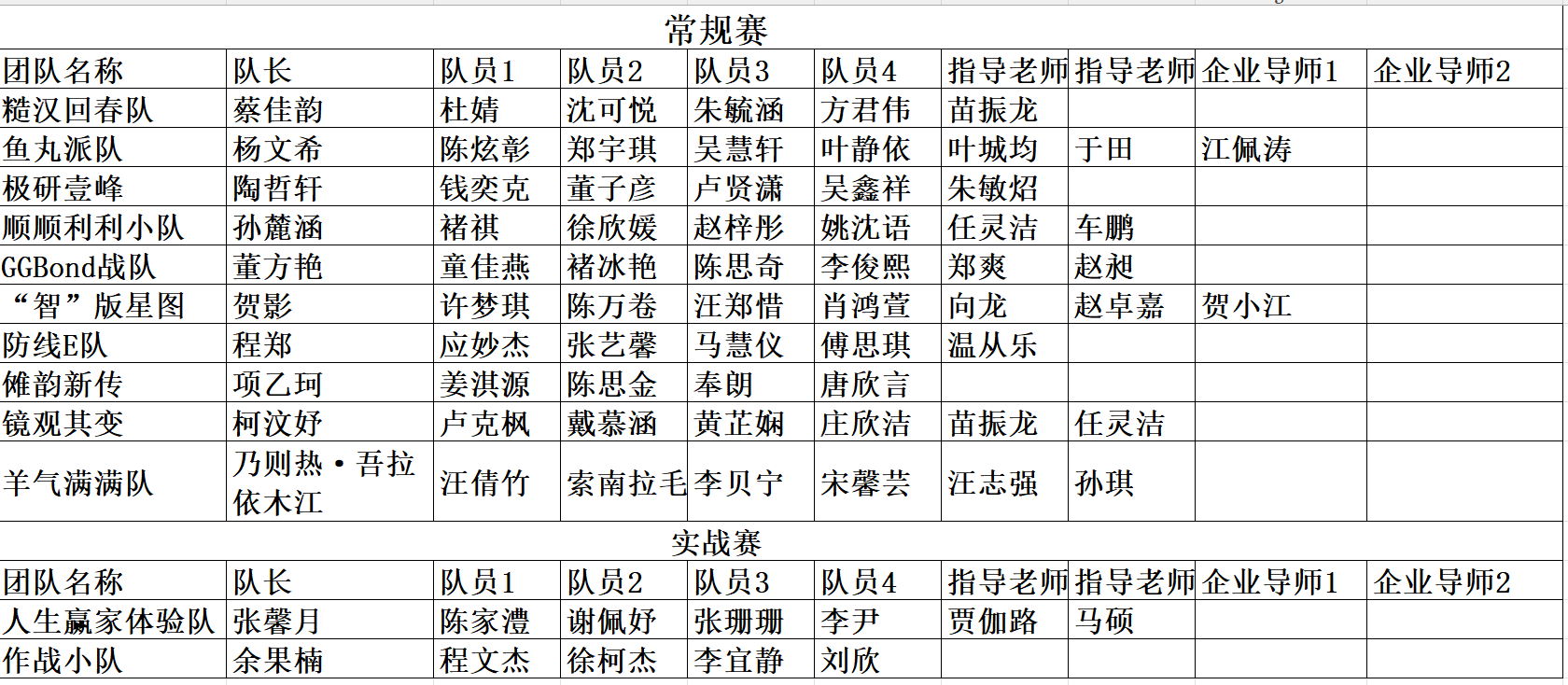 2.附表中答辩团队及顺序信息均来自校赛平台,如发现姓名错误请及时联系更正,其他信息不再修改。