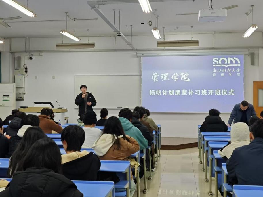 扬帆计划朋辈补习班举行开班仪式,学院教学副院长张雷、学办主任李桢、团委副书记陈蓓蓓、辅导员刘军华及全体补习学生参加仪式。活动由5278论坛