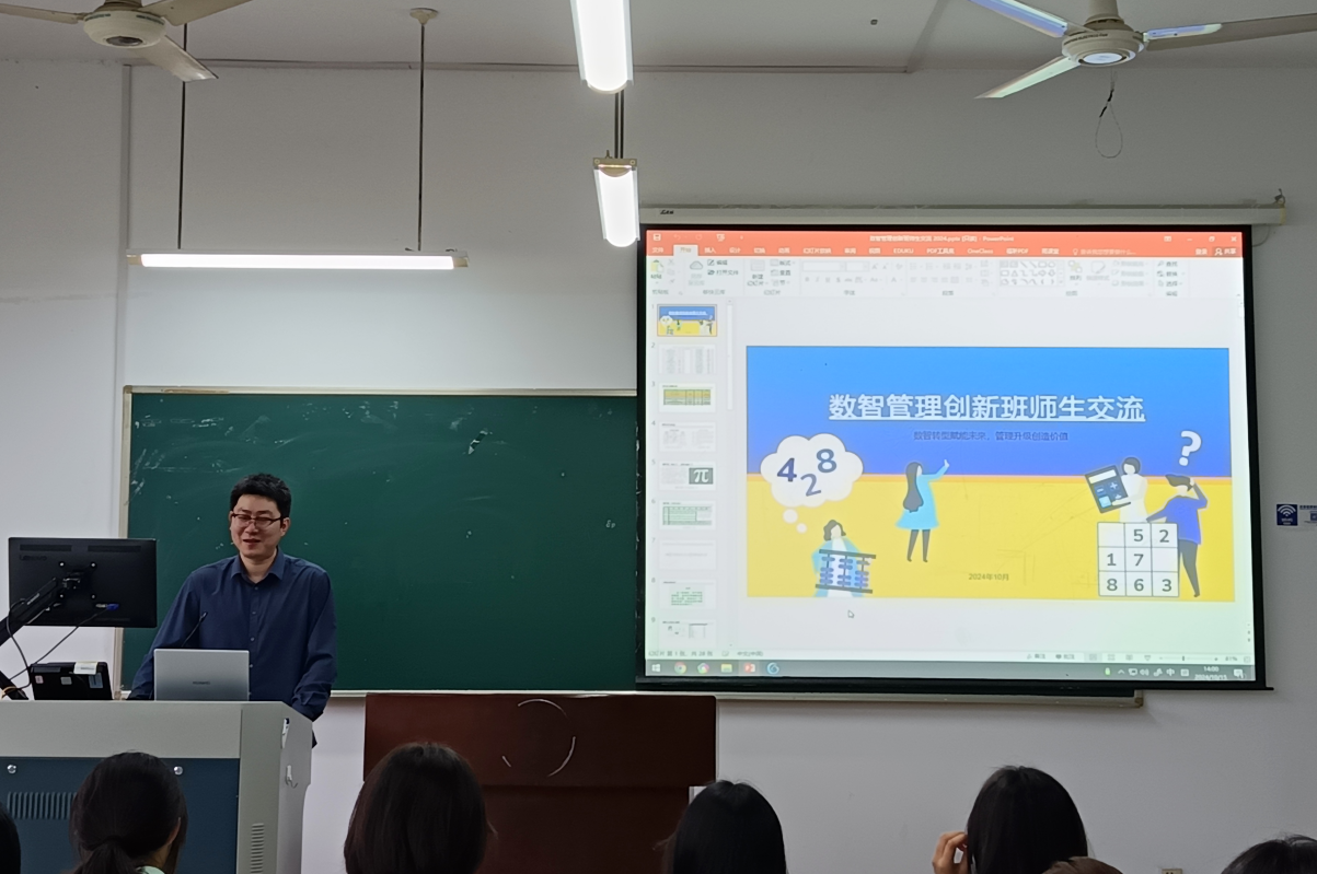 最后,创新班项目执行人沈渊给大家具体讲解了创新班培养方案。在课程安排上,数智创新班更注重小班化的专业课教学,提供集中的师资力量保障,搭建校内外合作平台,为学生提供更加专业,高效,全面的人才培养方案。数字创新班课程注重管理学科的“软硬结合”,既关心“软技能”的培养,又注重“硬实力”的提升。既对学生的思想性、思维性习惯,大管理思想,创新创业理念,领导能力等软素质加强培养;又对学生的专业数据分析能力,商务智能的探索,人工智能技术等相关领域提供硬实力技能的培训。