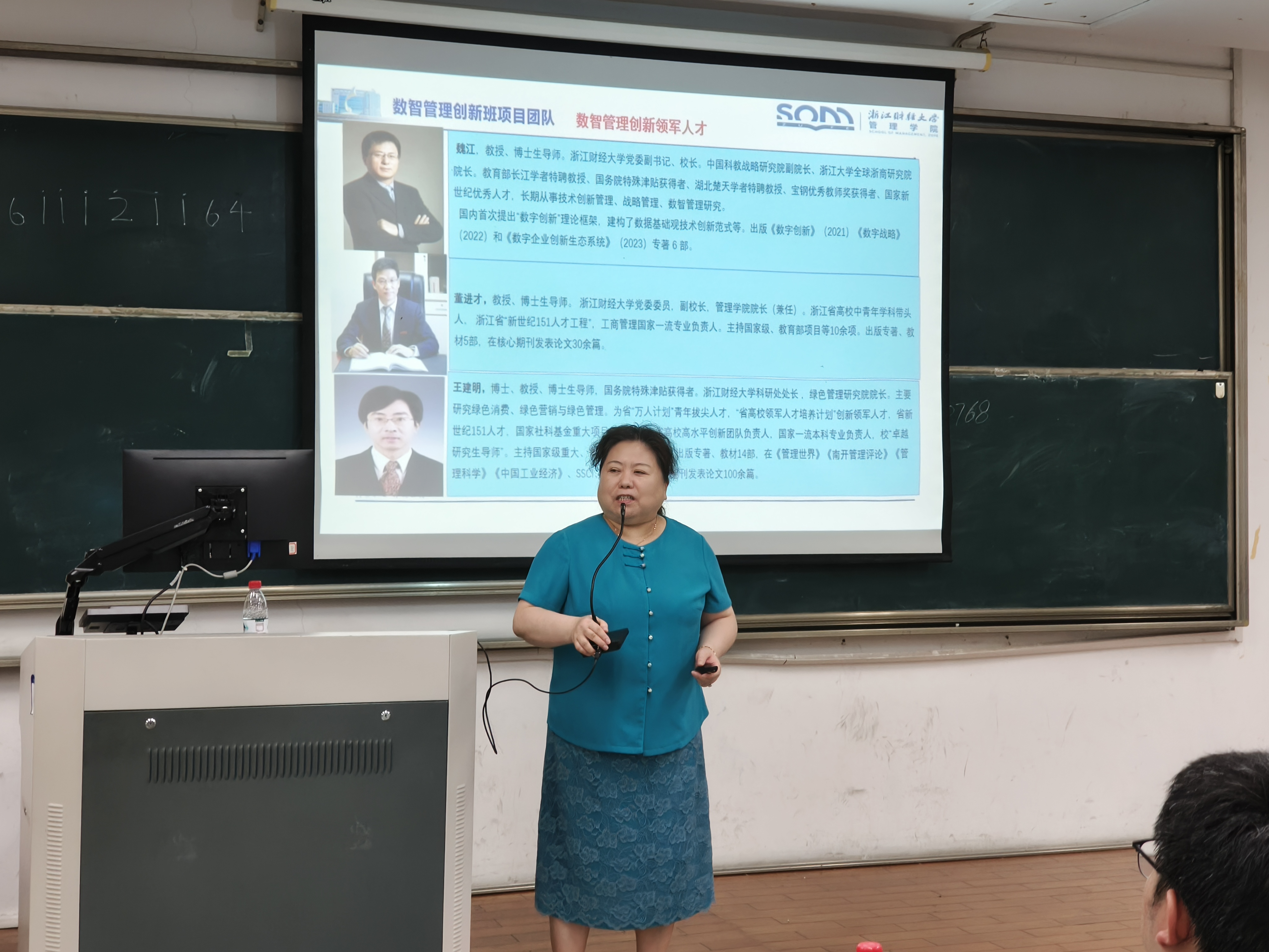 班主任吴丽民老师则着重从数字化管理人才所需的专业知识与技能、个人特质与素养、业务知识与技能以及领导力这四个维度,阐述了数字化管理人才的重要性,并强调了数智管理创新班在培养这类人才方面的重要作用。
