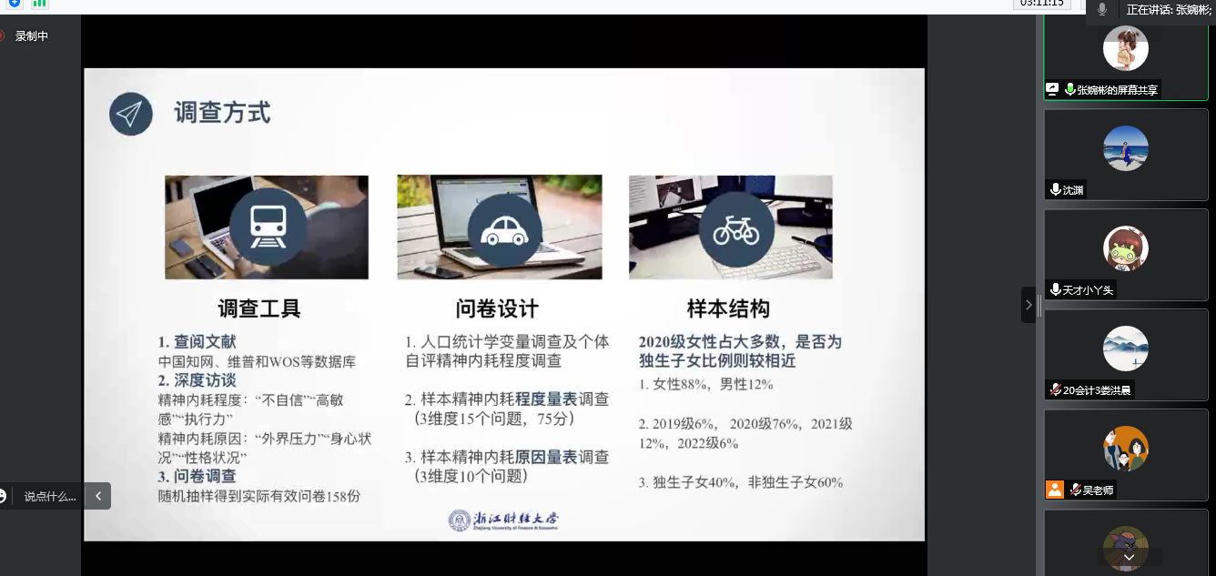 2022年12月22日,《商务统计与软件应用》课程举办统计调研报告线上决赛,会计学院、工商5278论坛