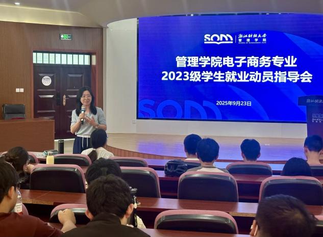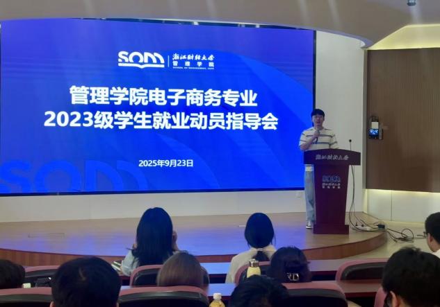 为帮助2023级电子商务专业学生明确就业方向、提升就业竞争力,学院于2025年9月23日隆重举办了“2023级学生就业动员指导会”。本次会议旨在为学生提供全面的大三学期规划与未来发展方向,引导学生积极应对就业市场新形势。