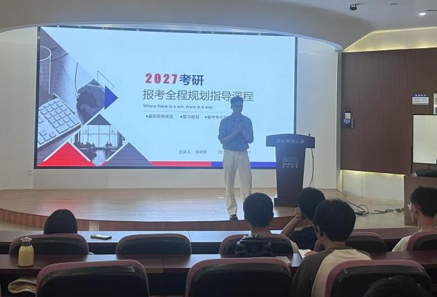 此外,会议还特别设置了考研专题环节,由李老师主讲“2027考研报考全程规划指导课程”,为有考研意向的同学提供系统的复习规划、专业选择与报考策略指导,鼓励同学们坚定信念,科学备考。