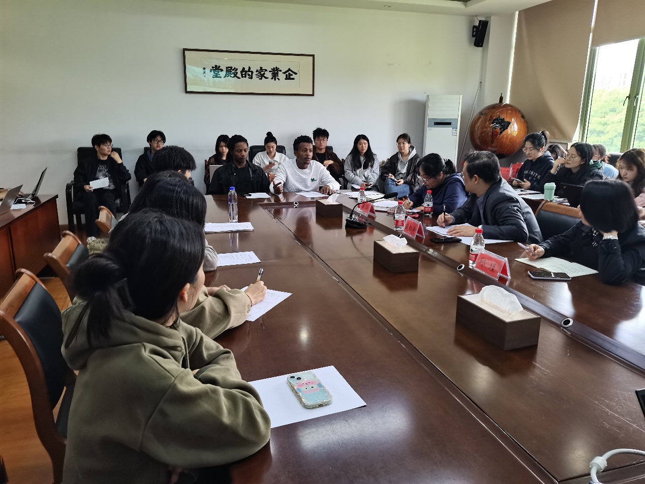 2023-2024学年春季学期国内外研究生期中座谈会于2024年4月23日在5号楼410会议室成功举行。本次会议由学院副院长戴维奇教授主持,研究生教学督导邱瑾教授、留学生主管董蕊教授、研究生秘书徐璐老师及37位国内外研究生代表,共同探讨了研究生课程教学和培养管理的现状与挑战。