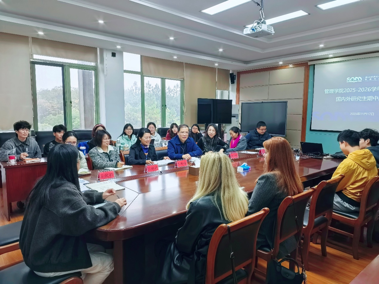 在5号楼410会议室组织召开了2025-2026学年秋季学期研究生期中座谈会。会议由学院副院长戴维奇主持,校研究生教学督导赵宇恒,院研究生教学督导王跃梅、谢凤华、彭娟娟,以及专硕学位点负责人高键、王婉茹、研究生辅导员、研究生秘书等出席了本次座谈会。