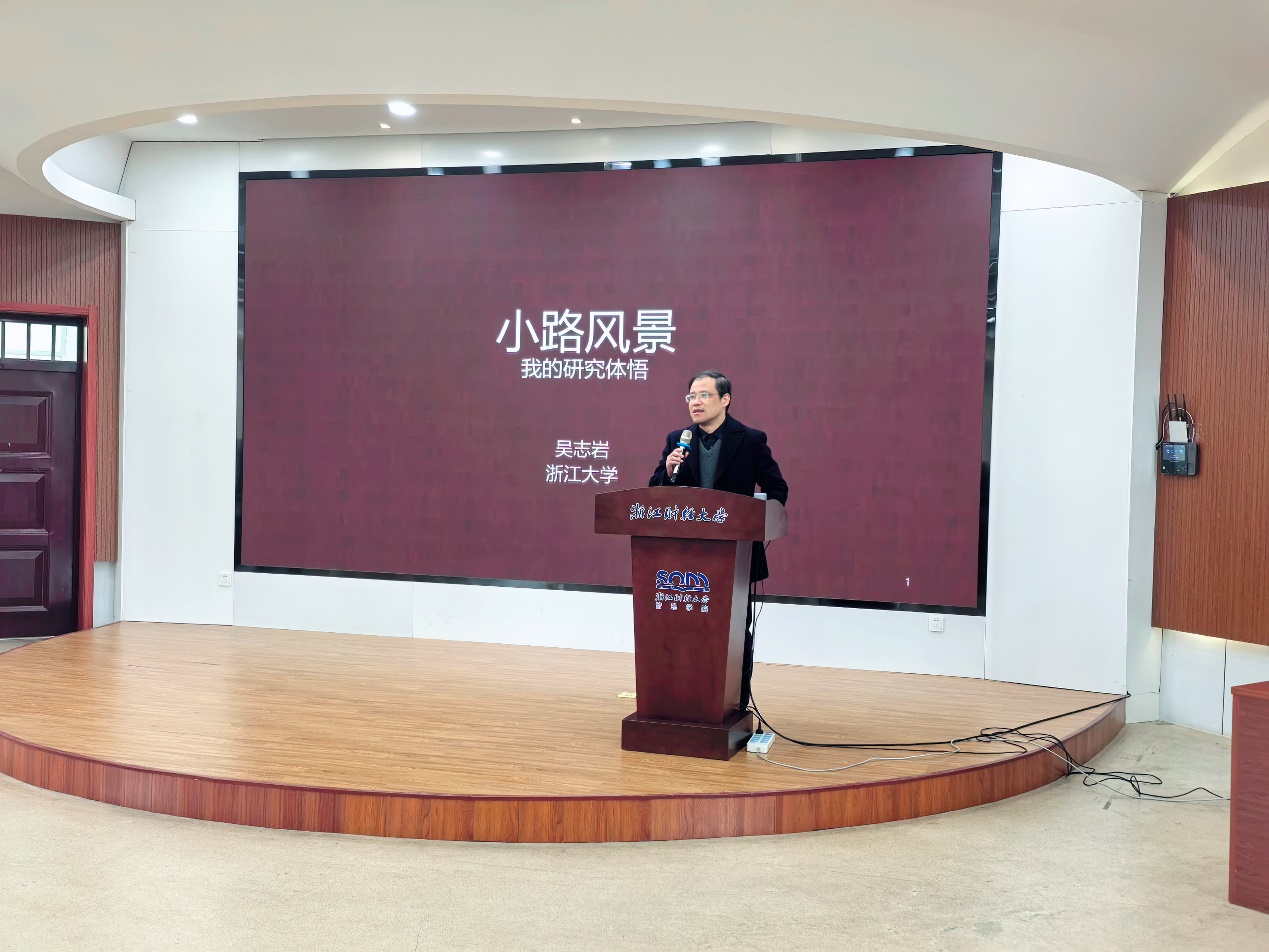 随后,吴志岩教授以个人科研历程为主线,结合丰富的研究案例与真切体悟,与在场师生回顾了自博士毕业以来所经历的“荆棘”与“风景”。他重点分享了在国外访学期间,通过参与导师项目,系统掌握了研究选题、研究设计的经历,以及最终在UTD等国际顶级期刊上发表多篇论文的精彩过往。他鼓励研究生在科研道路上坚持以学习为导向,既要脚踏实地、专注积累,也要拓展视野、广泛汲取,为未来的学术创新与突破做好充分准备。