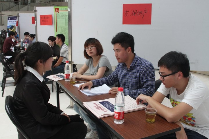 本次招聘会主要针对大二、大三学生,共有近30家企业提供销售、财务、人力资源等多个岗位,其中不乏银联商务有限公司、中国太平洋人寿保险股份有限公司、龙湖地产等知名企业。