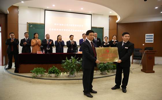 院长、党委副书记董进才与铭龙控股集团党委副书记、副总裁郭丰恩签署了党建共建协议,并为共建基地揭牌。