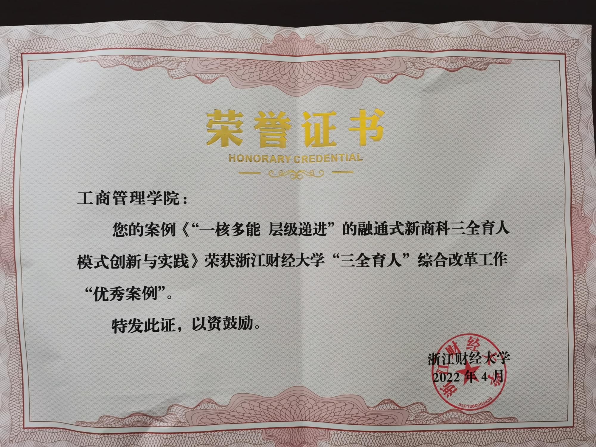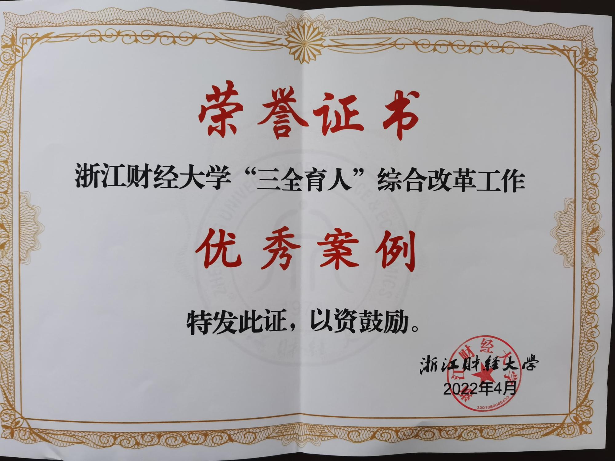 “三全育人”综合改革工作优秀案例。
