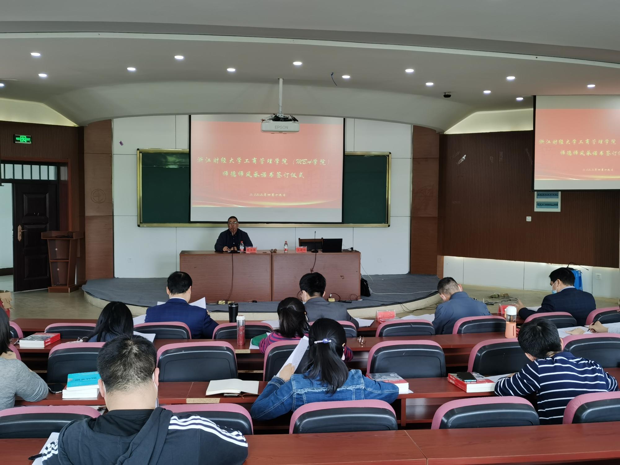 4月19日下午,学院在217报告厅举行了师德师风承诺书签订仪式。学院全体教职工参加了会议,会议由学院党委书记黄卫华主持。