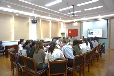 首先,支部书记周衍彤带领全体党员同志共同学习习近平总书记五四重要讲话及习近平总书记关于青年的系列讲话,并共同观看学生第四党支部五四活动成果——《中国很赞》手指舞视频,视频中支部党员同志来到浙财校园的各个角落,运用网络党建新形式为中国点赞。