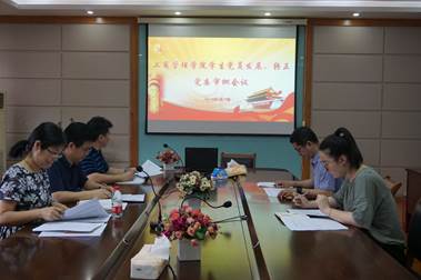 党委于学院楼410会议室召开2018上半年学生党员发展、转正审批会议。学院院长、党委副书记董进才,党委副书记、纪委书记谢敏,副院长、党委委员倪文斌,工会主席、党委委员郭军灵,党委秘书出席了会议。会议由谢敏副书记主持。