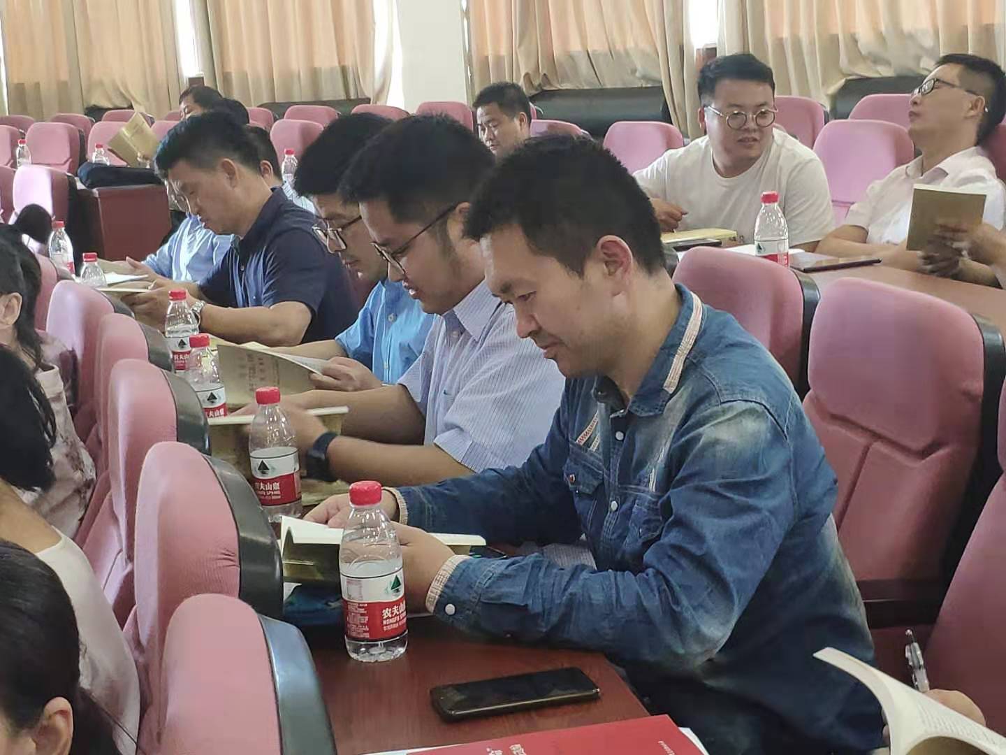 最后,学院向与会人员发放《习近平关于“不忘初心、牢记使命”论述摘篇》、《习近平新时代中国特色社会主义思想学习纲要》两本书籍,并组织现场交流学习。