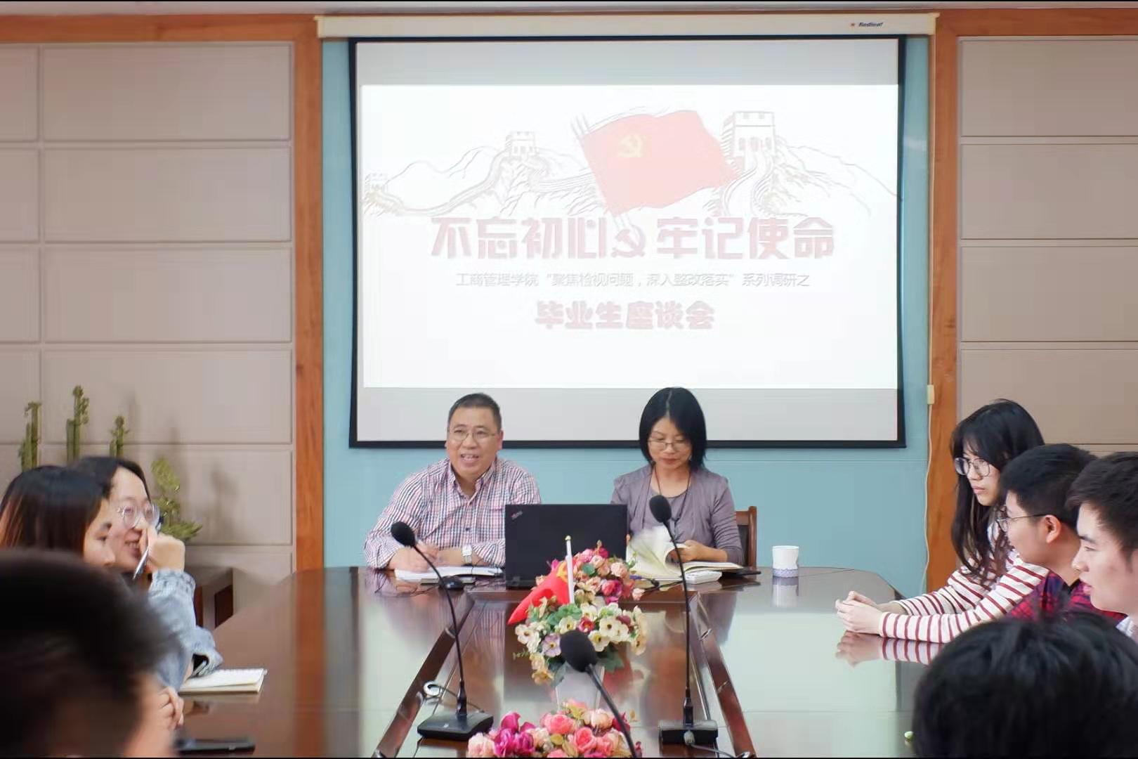 系列座谈分为党支部书记座谈会、青年教师座谈会、MBA校友座谈会、MBA学生座谈会、毕业生座谈会、贫困生座谈会、学生干部座谈会、体育生座谈会以及新疆生座谈会九场会议。学院党委书记黄卫华,院长、党委副书记董进才,院党委副书记、纪委书记谢敏,副院长王建明出席系列座谈,同与会代表们深入交流并广泛征求意见,认真听取了学院在人才培养、学科建设、教育教学、对外服务等多方意见。学院党委书记黄卫华指出,座谈会是检视问题,整改落实的一个重要环节,学院党委会逐一解决和落实代表的各项建议,借助初心和使命的力量更好的服务全院师生,促进学院各项工作更快更好发展。