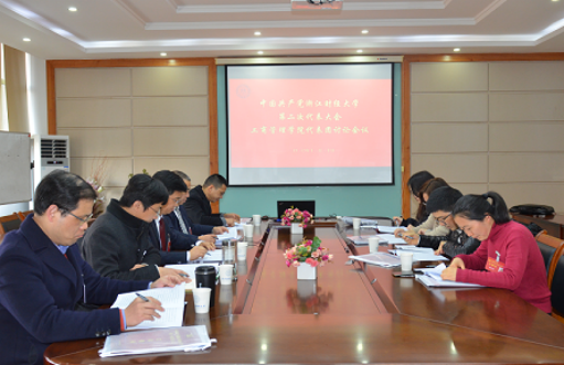 党委书记黄卫华、院长王建明、学院党委副书记林骁邦、副院长戴维奇、院办主任邱夏、学办主任胡星平、教工第二党支部书记谢凤华、研究生张晓杭等8名正式代表,1名列席代表参加本次会议,会议由代表团团长黄卫华主持。