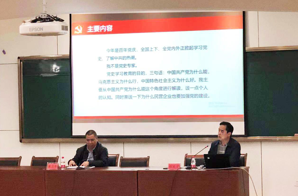 于学院楼217报告厅举办了一堂“读懂中国共产党——从中国的政治优势看民营企业加强党建的重要性”党史学习课。