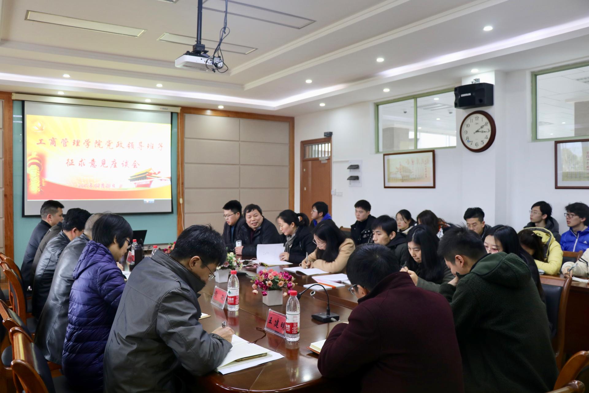 于学院楼410会议室召开学院党政领导班子征求意见座谈会。学院党政领导班子成员,教工、学生党支部代表,各系(部)教师代表,行政教师代表参加了本次座谈会。会议由学院党委书记黄卫华主持。