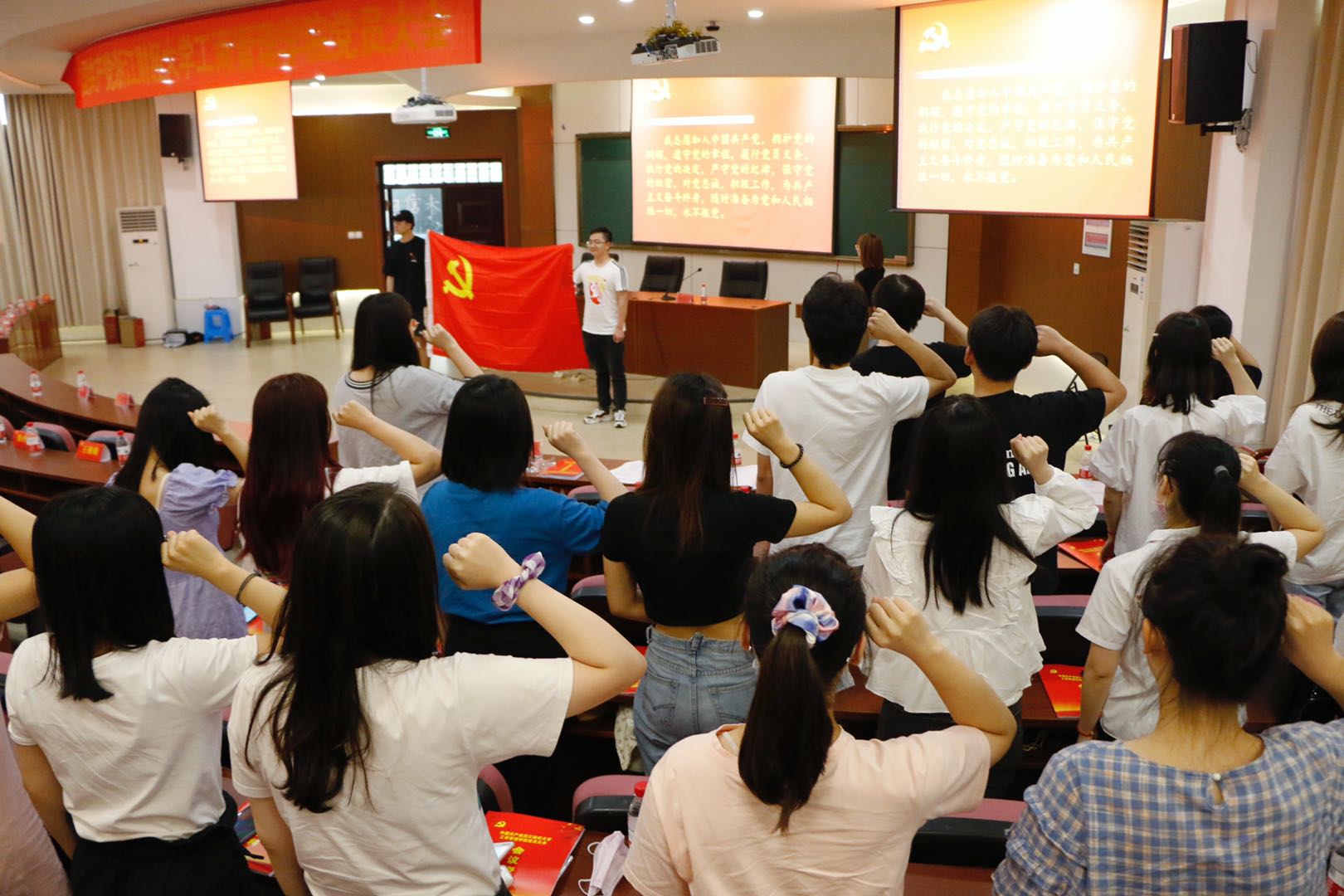 宣誓完毕后,新党员朱梦君同学代表本次宣誓的预备党员作了表态发言,他表示今后要认真学习习近平新时代中国特色社会主义思想,坚定政治信仰,加强组织观念,提高自身修养,积极履行党员的责任和义务,做一名新时代合格党员。