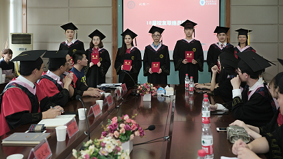 王建明副院长和郭军灵老师为同学们佩戴了黄色校友校徽。希望校友们无论走向何方,仍能够记得在浙财的青春与奋斗。浙财也永远在这里,等待校友们的归来。