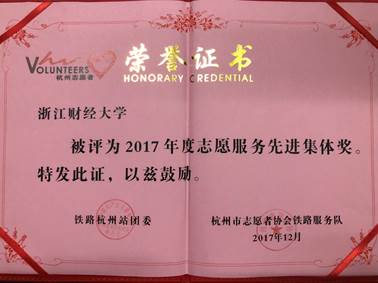 青年志愿者协会因在杭州东站春运期间“暖心护杭、志愿财大”志愿服务中做出了突出贡献,受邀参与年会并获表彰。